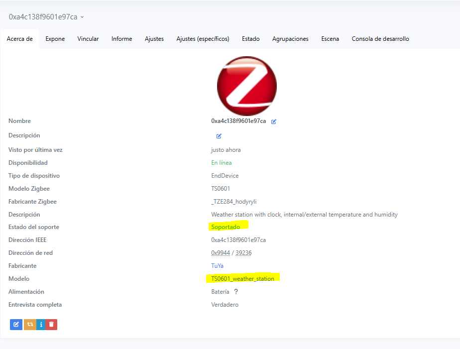 Nada mas emparejarlo nos dice que no esta soportado , y nos devuelve este identificador “_TZE284_hodyryli“